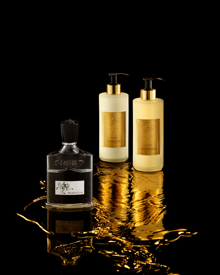 Transforma la limpieza diaria con Aventus Gel Limpiador para Cuerpo y Manos, un gel limpiador perfumado con la fragancia más icónica de Creed, que se convierte en suave espuma.